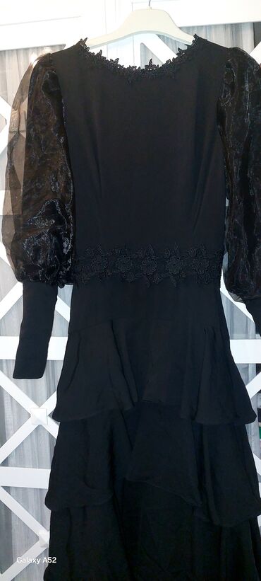 - Model: Uzun, qat-qat ətəkli (ruffle) qara don