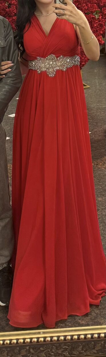 ❗️‼️endirim edildi cemi 1defe geyinilib esil xina niwan geyimi! Qırmızı rəngdə zərif ziyafət/libas - Uzun, yerə qədər axıcı ətəkli model - Şifon-tüllə hazırlanmış ətək hissəsi, çoxqatlı və hərəkə...
