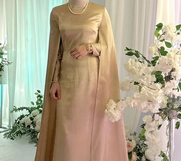 Qızılı rəngdə, tam uzun, payetli gecə/libas.1 dəfə geyinilib qolundakı tüklü detayı yoxdur.120 alınıb 90 satılır - Parıltılı payet parçadan tikilib, bütünlükdə qızılı tonlarda. - Ön hissə “wrap” (...