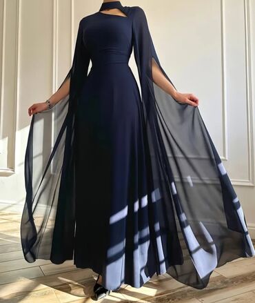 EndirimsizTünd göy rəngdə uzun ziyafət donu