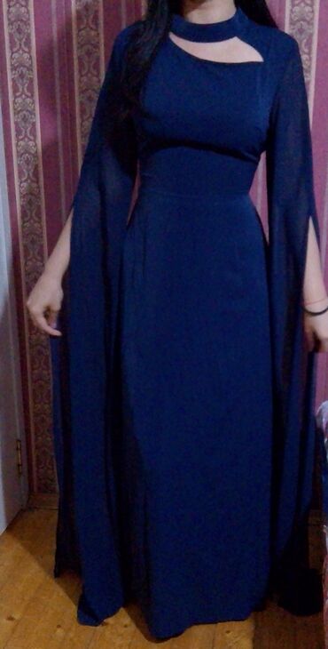 Bir defe geyilib 320 manata alınıb yarı giymetine 100manata satılır. Tünd göy rəngli ziyafət/gecə libası - Parlaq, axıcı atlas material - Çiyin açıq,...