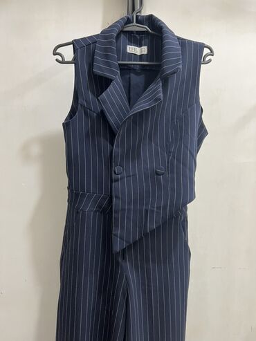 Zərif siluet verən, modern-ofis tərzini önə çıxaran zolaqlı kombinezon.