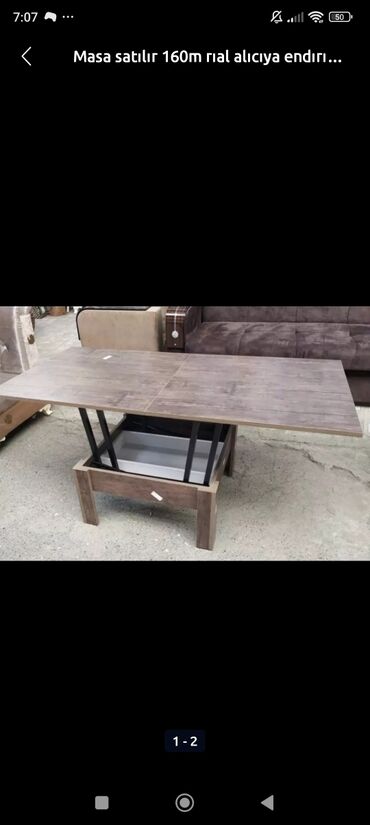 Şəkildə yazı: “Masa satılır 160m rial alıcıya endir…” məlumatı yer alır.