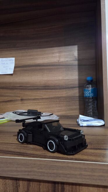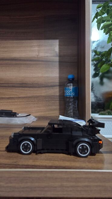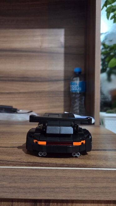 Konstruksiya oyuncağı – qara rəngli sport avtomobil modeli (LEGO tipli bloklardan yığılmış)