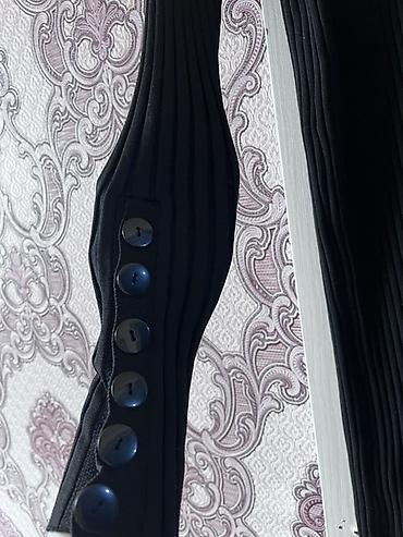 Qara, uzun maxi don - ölçü 48 - Düyməli ön hissə - Qolu uzun, rezinli manjetlər - Qat-qat ətək - Yüngül, axıcı parça - gündəlik, hicab kombinləri üçün uyğundur. Qiymət 20 AZN