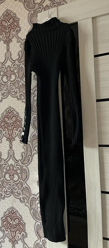 Qara rəngli ribli trikotaj paltar - Model: uzun boğazlı (turtleneck), uzunqol, dar kəsim, bədənə oturan siluet - Material: elastik, uzanan ribli trikotaj (isti və rahat) - Uzunluq: dizə yaxın/orta...