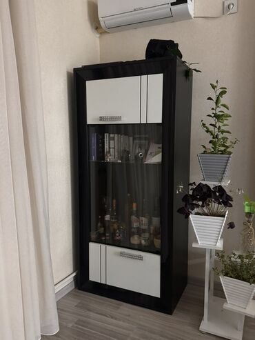 Şüşəli dolab vitriniQara-ağ rəng vitrinli şkaf təcili atılır!