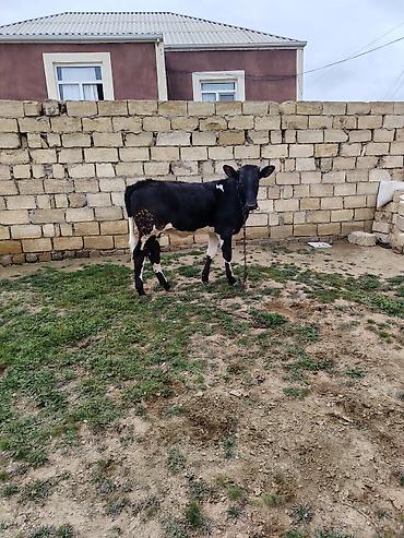 Satlıq dana – yerli qarışıq cins - Rəng: qəhvəyi bədən, ağ alın və