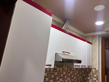 - Üst modul: bir neçə qapaqlı asma dolab, inteqrasiya olunmuş metal aspirator (havalandırma borusu ilə)