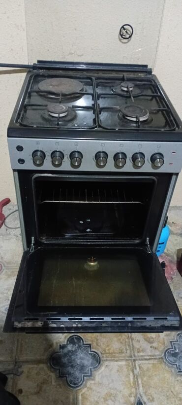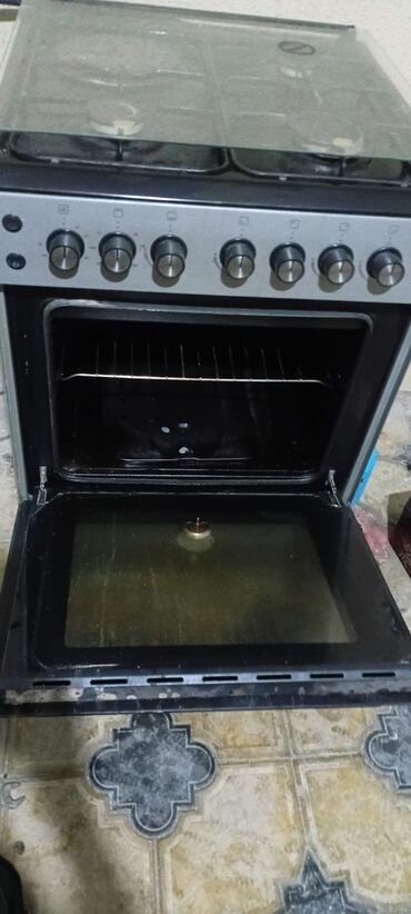 - Alt hissədə qaz sobası: şüşə qapı, daxildə çıxarıla bilən ızgara rafı