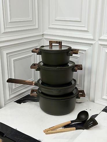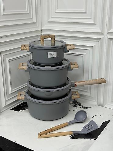 Mətbəx qab-qacaq dəsti – qazan və tavalar + 2 ədəd silikon qaşıq/spatula