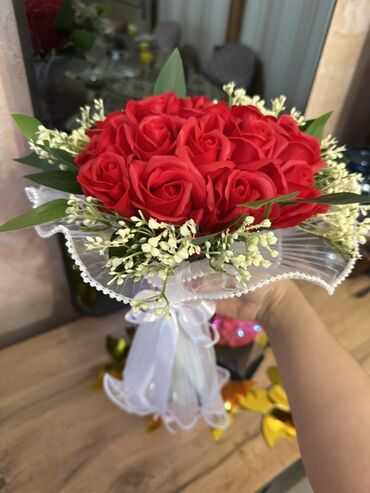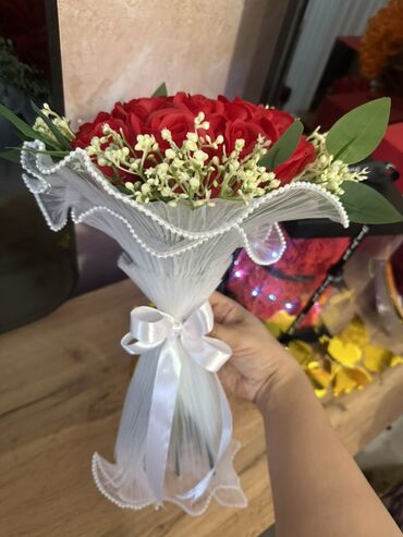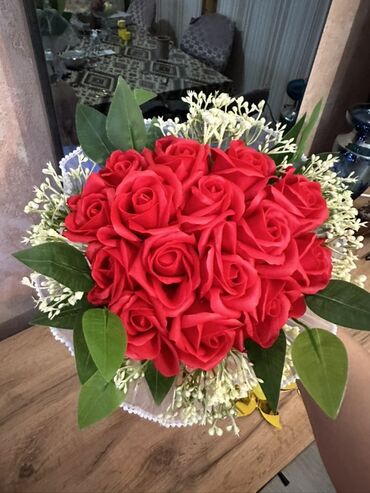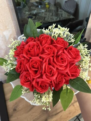 Qırmızı gül buketi – dekorativ kompozisiya