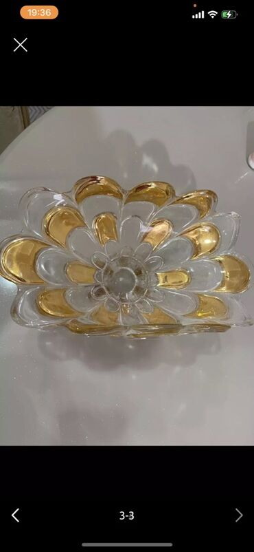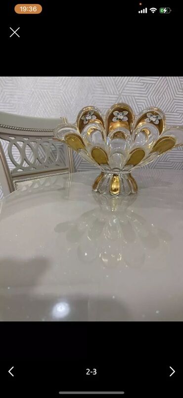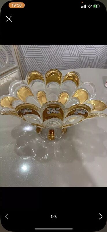 Qızılı naxışlı şüşə meyvə/qənnadı qabı