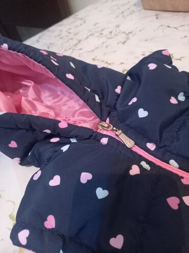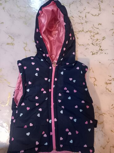 Uşaq üçün kapüşonlu jilet - Brend: else (etiketdə qeyd olunub) - Ölçü: 9–12 ay - Rəng: tünd çəhrayı/fuşya - Naqış: kiçik ürəklər (ağ, mavi və açıq çəhrayı tonlarda) - Material: yüngül isti dolğu i...