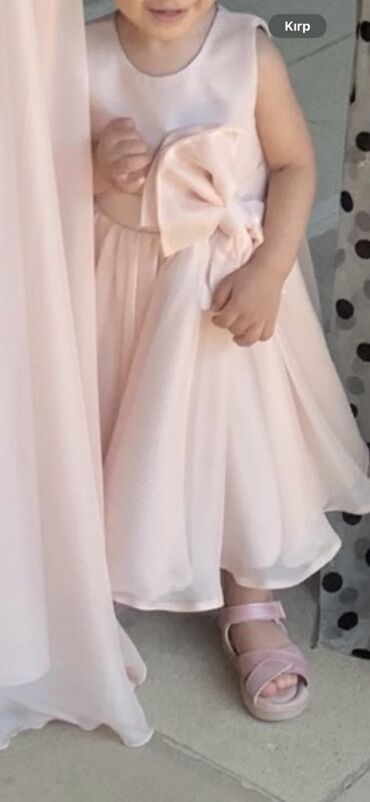 Uşaq üçün zərif ziyafət/libas paltarı - Rəng: açıq çəhrayı - Parça: yüngül, lay-lay ətək hissəsi ilə - Dizayn: qabarıq şar tipli qısa qollar, iri dekorativ ön bant (qurdelə) və mərkəzdə daşlı/bəzə...