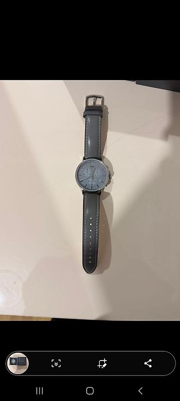 - Rəng palitrası: Gümüşü siferblat və korpus, boz dəri kəmər