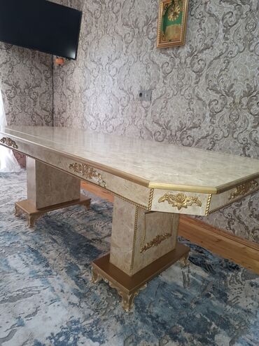 İşlənmişStol. Ölçüləri evə böyük olduğu üçün satılır. uzunu 206 sm, eni 94 sm. Yaxşı vəziyyətdədir. Üzərində cızıq, ləkə heç bir problem yoxdur. Ayaqlarında 1 2 yerdə soyulma var ( 5-10 manat xərci var). Qiyməti ona görə aşağı qoymuşam. Xahiş olunur qiyməti aşağı salmaq üçün zəng olunmasın.