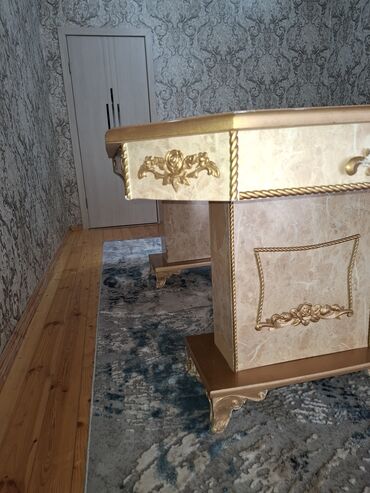 Qonaq otağı üçün masa Uzunluq: 2m (açanda 2,5m) Eni: 1m Hündürlük: 0,8m Çox möhkəmdir və etibarlıdır. Səliqəli istifadə olunub. 10-12 nəfərlikdir.