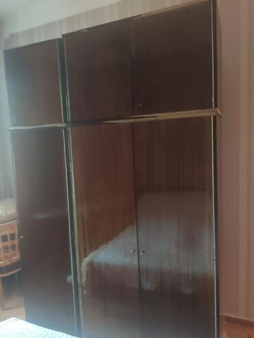 - Geniş qarderob şkafı: Tünd parlaq (laklı) fasadlar, iki əsas bölmə və yuxarıda əlavə dolab hissələri. Geyim, yataq ləvazimatı və digər əşyalar üçün çoxsaylı rəf və asılqan sahəsi.