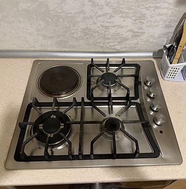 - Quraşdırılmış kombinə edilmiş plitə: 3 qaz + 1 elektrik ocağı, mexaniki idarəetmə düymələri, çuqun qəfəslər.