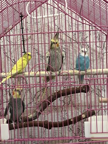 - İçəridə 4 quş: 2 ədəd nimfa (boz-sarı daraqlı), 2 ədəd dalğıç/budgerigar tipli kiçik dalmatika/paraket (sarı və mavi-ağ rənglər)