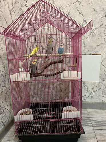 Ev üçün dekorativ və səsli yoldaş quşlar üçün geniş yaşayış sahəsi təqdim edən komplekt. Qəfəs daxilində yemliklər, oturacaqlar və budaqlar hazır vəziyyətdədir.