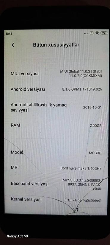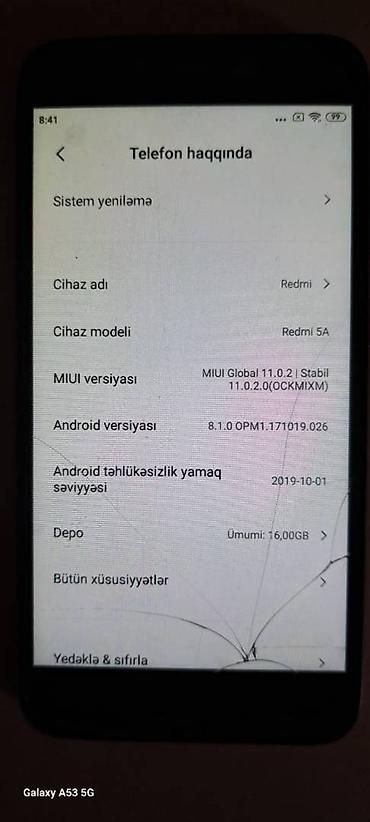 Xiaomi Redmi 5A 2GB/16GB. Yaxşı vəziyyətdədir,heç bir problemi yoxdur. 0517434271 Whatsapp yazin