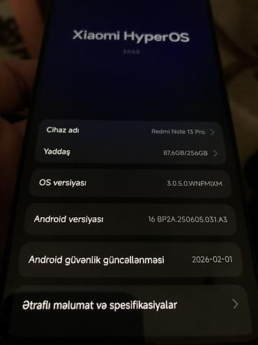 REDMİ NOT 13 PRO .256.8.Telefon təzəden seçilmir,heç bir cızığı çattı ustada olmuyub.Her şeyi var.tecili satiram