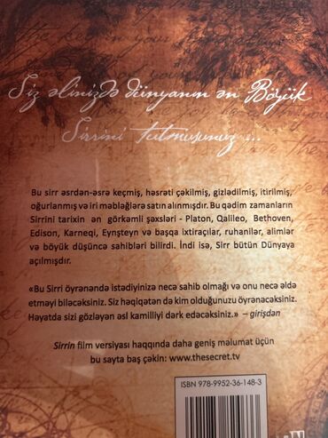 - Bərk üzlü nəşr, qapaqda “The Secret” möhürlü dizayn