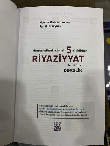 - Ümumtəhsil məktəblərinin 5-ci sinfi üçün rəsmi “Riyaziyyat” dərsliyi.