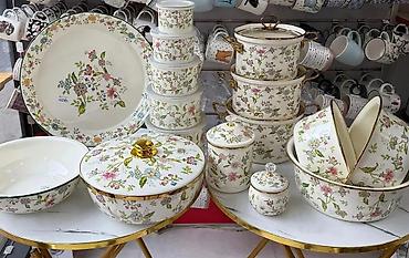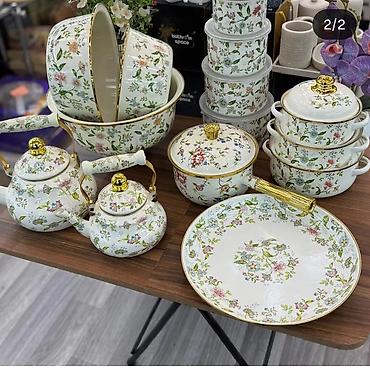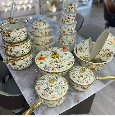 Çiçək naxışlı emal qab-qacaq komplekti