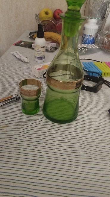 Yaşıl şüşədən dekanter və stəkan dəsti