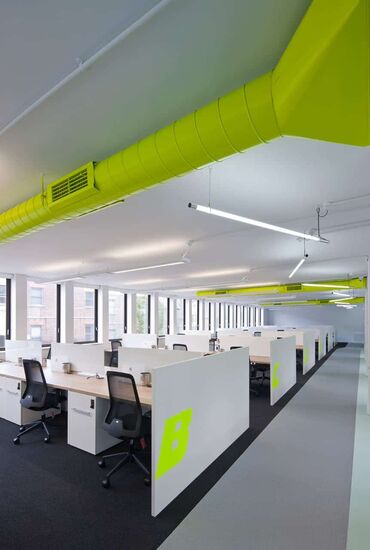 - Açıq planlı ofis sahələrində rəngli magistral kanallar