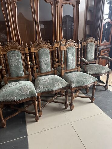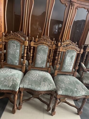 Klassik yemək otağı dəsti Tərkibi: - 1 ədəd iri yemək masası (dördkünc, geniş səthli), 8 ədəd stul ilə - 1 ədəd iri vitrin şkafı (3 qapılı, şüşəli rəflər, aşağıda çekmecələr) - 1 ədəd tək vitrin (...