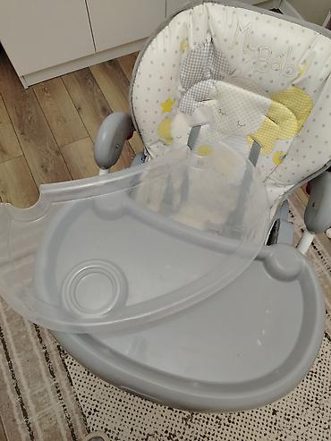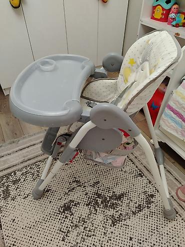 Idalanma üçün uşaq oturacağı. Ideal veziyetdedi. Cox funksiyası var, firlanir, qalxib dusur, beli qatlanir, tekerlidi,adi kreslo kimi de istifade etmek olar. Mohkem bir oturacaqdir, sadelerden deyi...