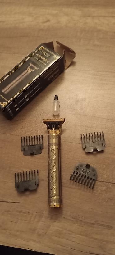 Metal gövdəli, naxışlı dizayna malik saç/saxsqal trimmeri (T-bıçaq). Qutusu ilə birlikdə.