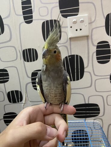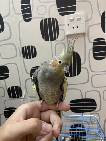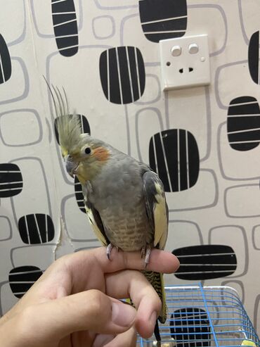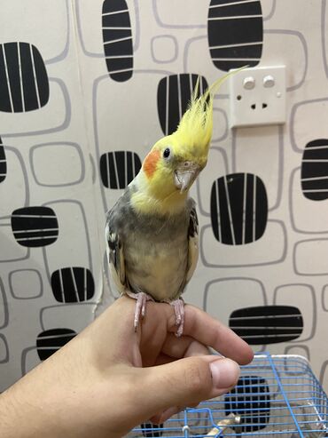 Nimfa (Cockatiel) tutuquşu - Növ: Nimfa (Nymphicus hollandicus) - Rəng: sarı-crem, yanaqlarda narıncı ləkələr, başda xas “toqqa” (çölbük) - Xasiyyət: ev şəraitinə tez uyğunlaşan, səsə və ünsiyyətə...