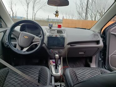 Ağ rəngdə Chevrolet Cobalt avtomobili. Salonda oturacaqlar üçün örtüklər var. İdarə paneli boz rəngdədir. İlkin odenis 10000 ayliq 554azn her ayin 30zu odenis olunur 9ay odenilib 51ayi qalib