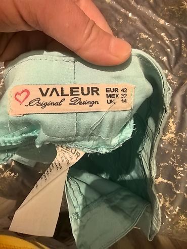 ZARX qadın şalvarı - Rəng: açıq yaşıl/menteş - Ölçü: EUR 34 (USA 2, MEX 24) - İstehsal ölkəsi: Türkiyə - Kəsim: dar/skinny stil, bel hissəsi kəmər üçün ilgəklərlə - Ciblər: ön hissədə 3 (iki ə...