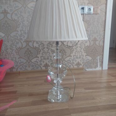 Klassik üslublu stolüstü lampa - Şapka: Qəhvəyi rəngdə, büzməli parça; aşağı kənarda muncuqlu/saçaqlı dekor. - Gövdə: Vaza formasında, mərmər effekti ilə; üzərində qızılı detal və gül motivi. - Ay...