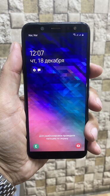 Telefonun ekranında rus dilində interfeys göstərilib, operator kimi Nar görünür. Ekranda saat və tarix, həmçinin sürüşdürməklə kilid açma göstərişi var. Arxa qapaqda “Samsung” loqosu, kamera və barmaq izi oxuyucusu yerləşir. Model gündəlik istifadə, sosial şəbəkələr, foto və multimedia üçün uyğun funksionallıq təqdim edir.