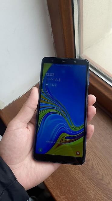 Samsung Galaxy A7 (2018) – mavi rəng - Ekran: 6.0" Super AMOLED, Full HD+ - Platforma: Android (Samsung One UI), Play Market və Google tətbiqləri mövcud - Kamera: arxada üçlü modul; canlı fokus, f...