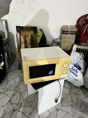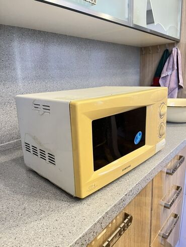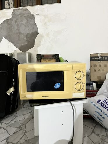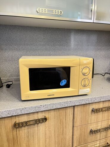 Samsung mikrodalğalı soba – retro krem rəngi, kompakt və idarəsi sadə model.