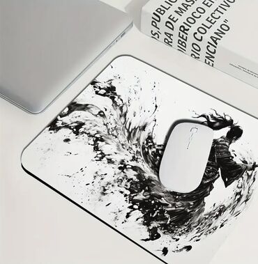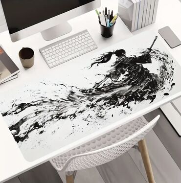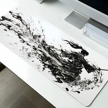 - Dizayn: Ağ fon üzərində fırça effekti ilə qara samuray illüstrasiyası; minimalist və zərif görünüş həm ofis, həm də oyun masasına uyğundur.