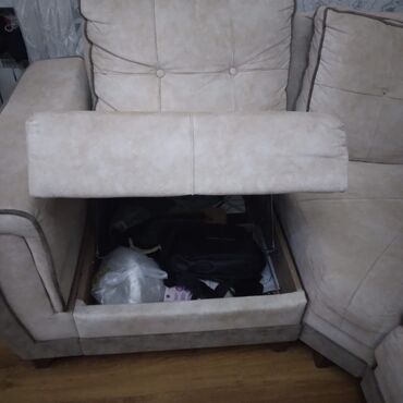 Komplekt: künc karkası, oturacaq yastıqları, arxa yastıqları və inteqrasiya olunmuş sandıq.
