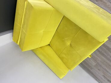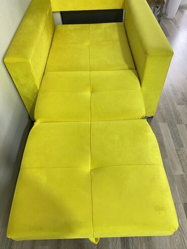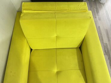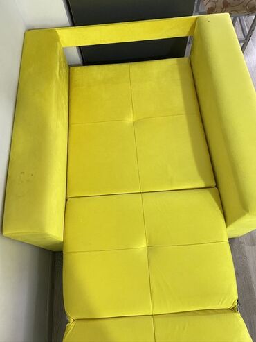 Parlaq sarı rəngdə transformasiya olunan kreslo-divan.
