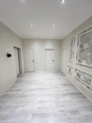 - İşıqlandırma: əsas otaqda çoxsaylı spot işıqlar, yataq otağında zərif çilçıraq. Tavan hündürlüyü rahat, perimetr boyu səliqəli plintus və karnizlər.