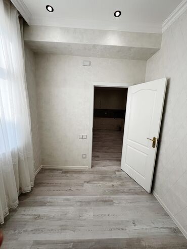- Döşəmə: açıq boz laminat, taxta teksturalı, otaqlara vizual genişlik verir.