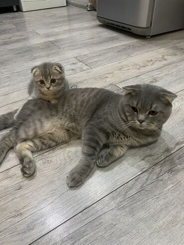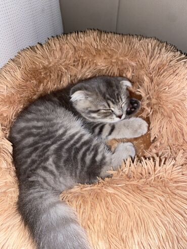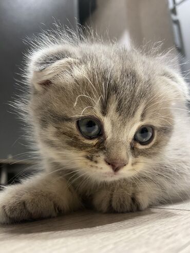 Skotş Fold balaları – evdə böyüdülmüş zolaqlı və mərmər naxışlı kürklərə malik, mavi iri gözlü, yumşaq tüklü, balaca pəncəli pişik balaları. Xüsusiyyətlər: - Cins: Scottish Fold (bükük qulaqlı) və...