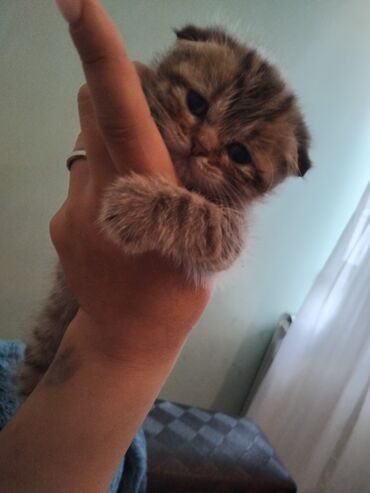 Pişik sentyabrın 10 u doğulub. Scottis straight dı. Təmiz cins pişikdi. Dişidi. 4 dənə idilər. 3 ü satılıb. Bidənə bu şirin qalıb. Tükləri bozla qızılıdır. Qum tərbiyəsi var, yemək sərbəst yeyir. ...